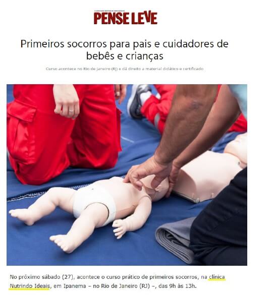 No próximo sábado (27), acontece o curso prático de primeiros socorros, na clínica Nutrindo Ideais, em Ipanema – no Rio de Janeiro (RJ) –, das
